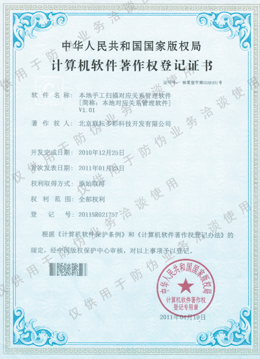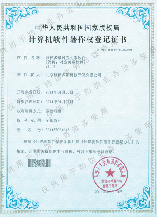 北京聯(lián)耘多彩科技開發(fā)有限公司成立于2008年如今已有多年的行業(yè)經(jīng)驗,我司的榮譽(yù)證書。